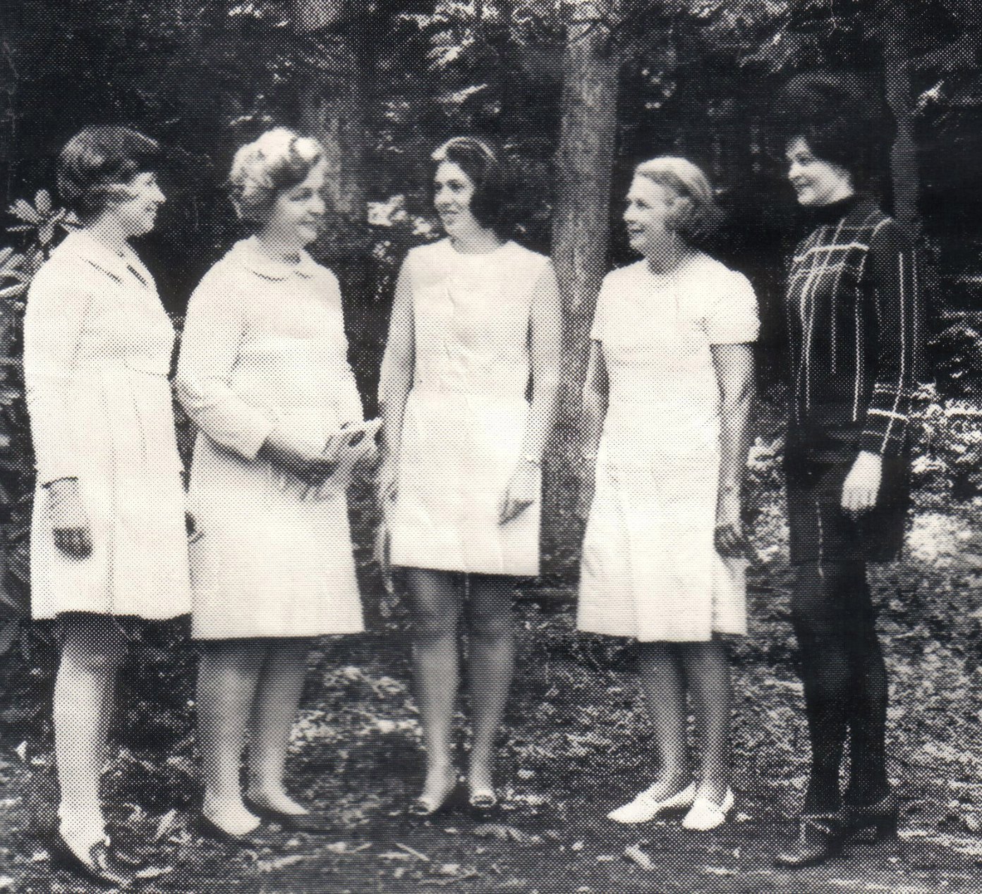 Mother, second from left, and other members of the Catholic Youth Center's "Harvest Moonshot" dance committee discuss plans for the dance.