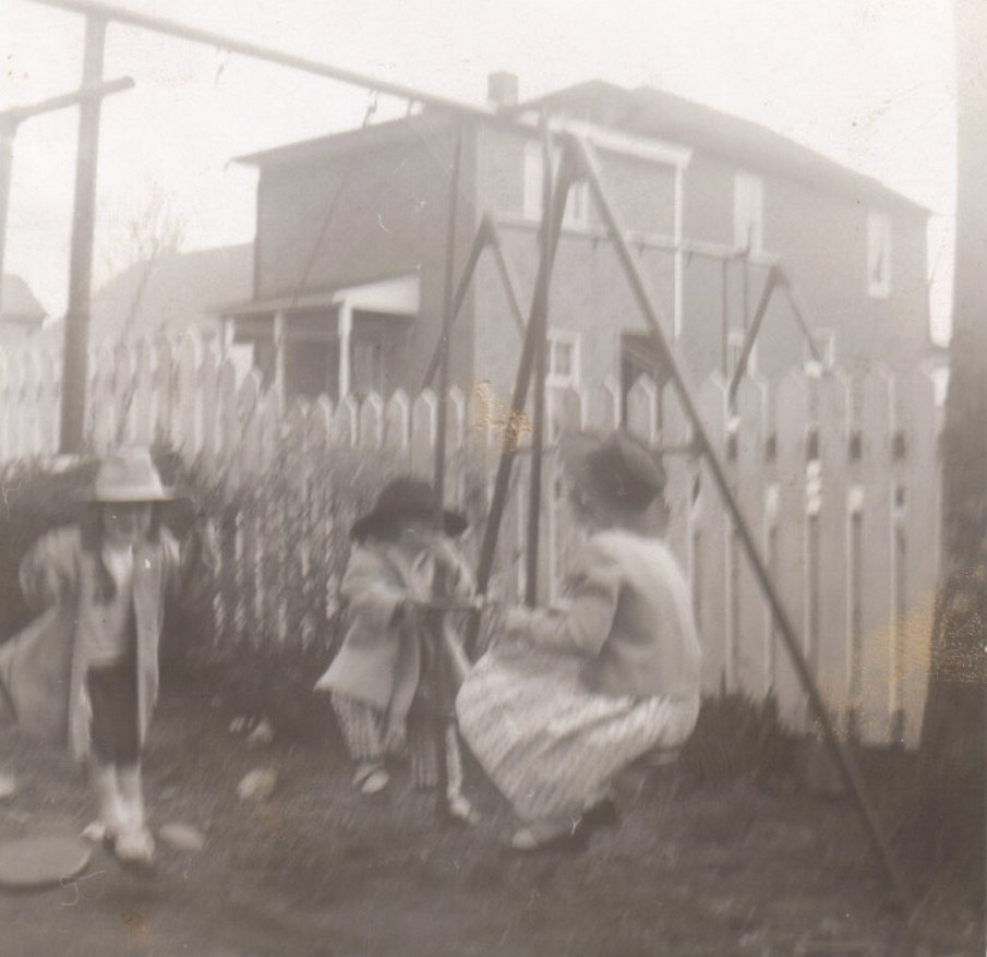 Alice, Nora and Anne behind house in Parsons