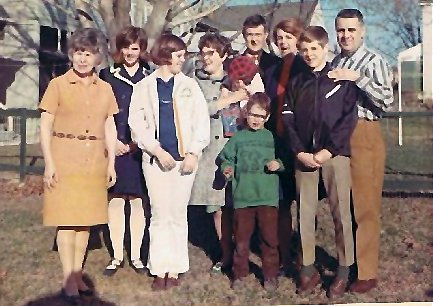 Comments: Here are some of Uncle Rich (Papa's brother) and Aunt Deal's children, daughters-in-law and grandchildren - in front are Mary, Ambie, Bobby and Richie Gill - in back are Debbie, Diane (holding Joey), Robert, Doris and Richard Gill.