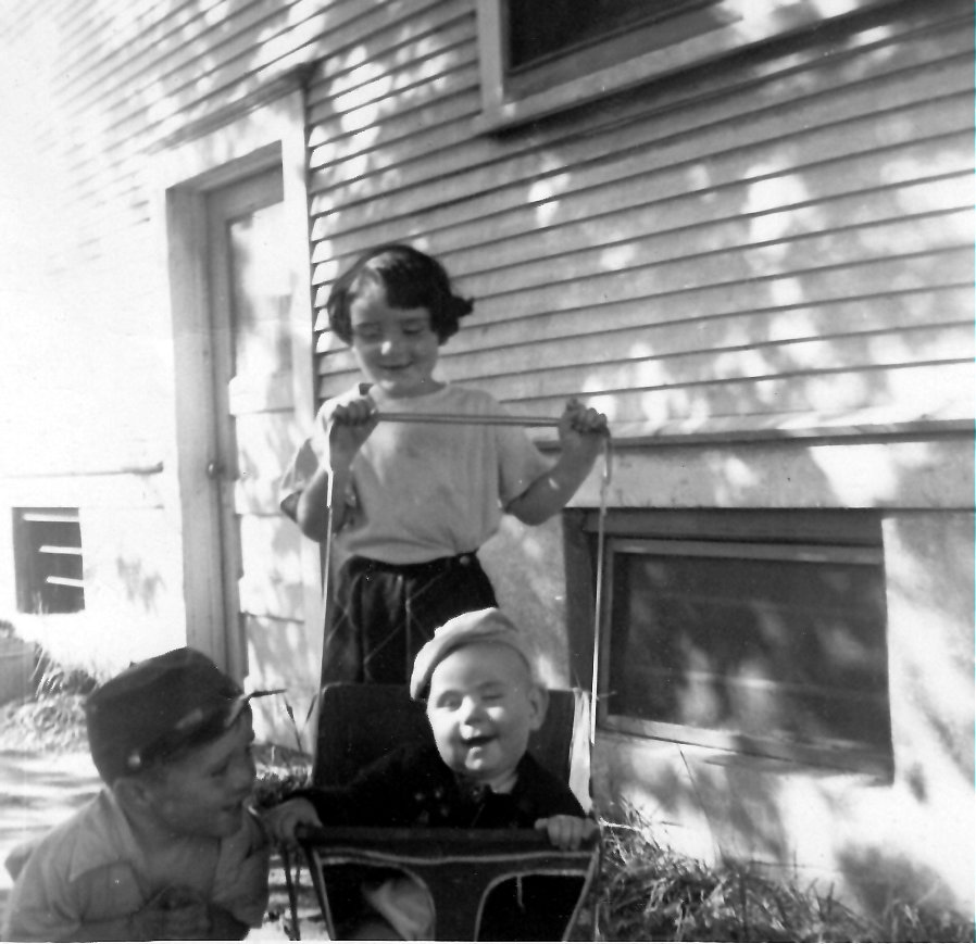 Nick on left and Peter while Mary is standing alongside house at 13 Flick Street in Parsons.