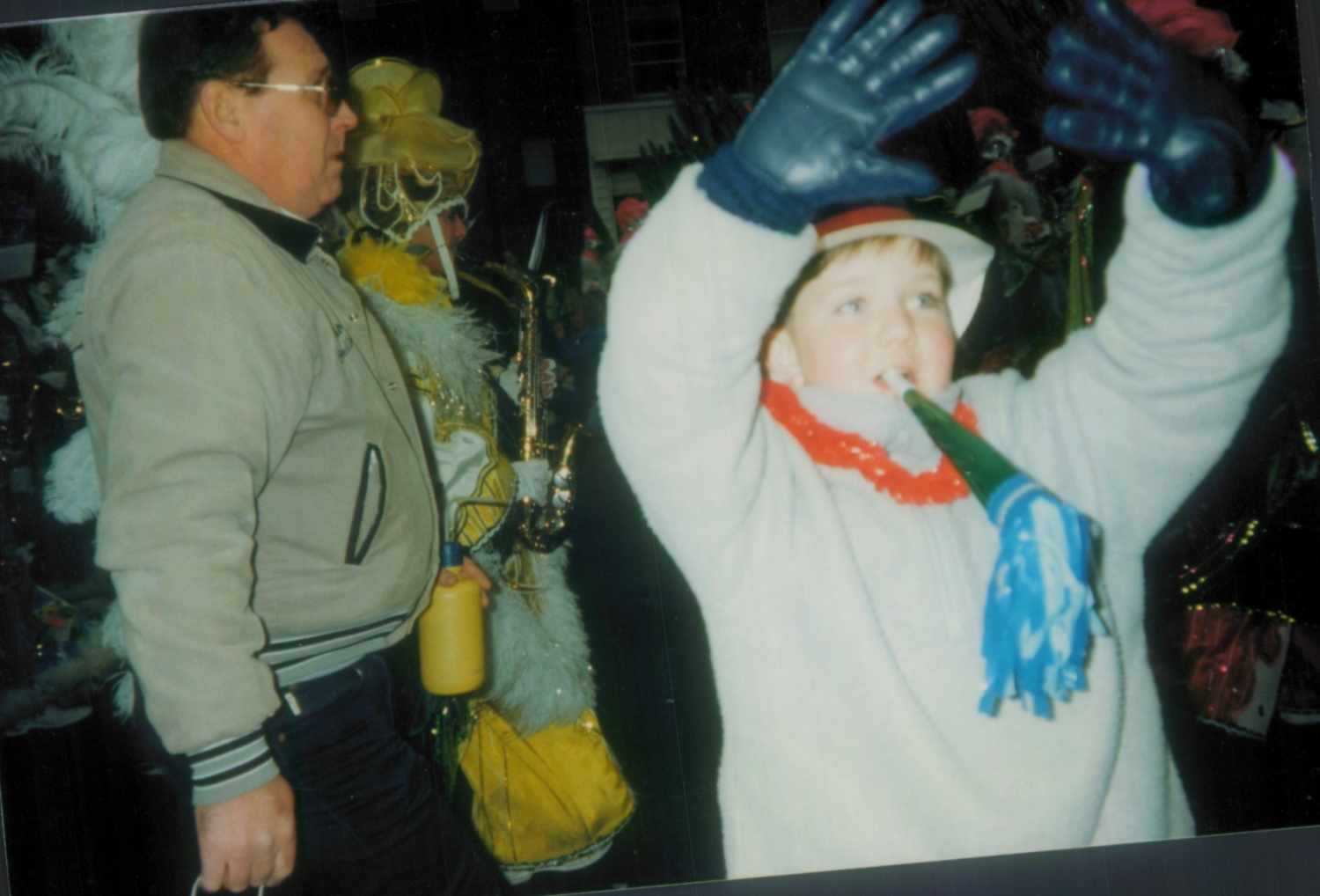 PJ on News Years Day at the Mummers Parade in Philadelphia