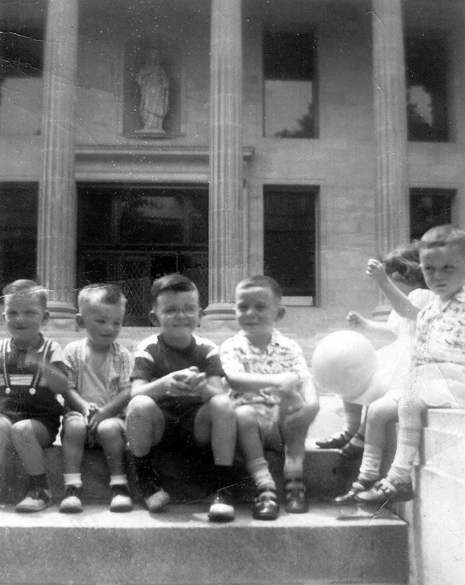Comments: Left to right cousins Robert, Jack and Frank. Tom, Mary and Michael. Written on back of photo is Marywood - Mother Marcella - 50th Jubilee.