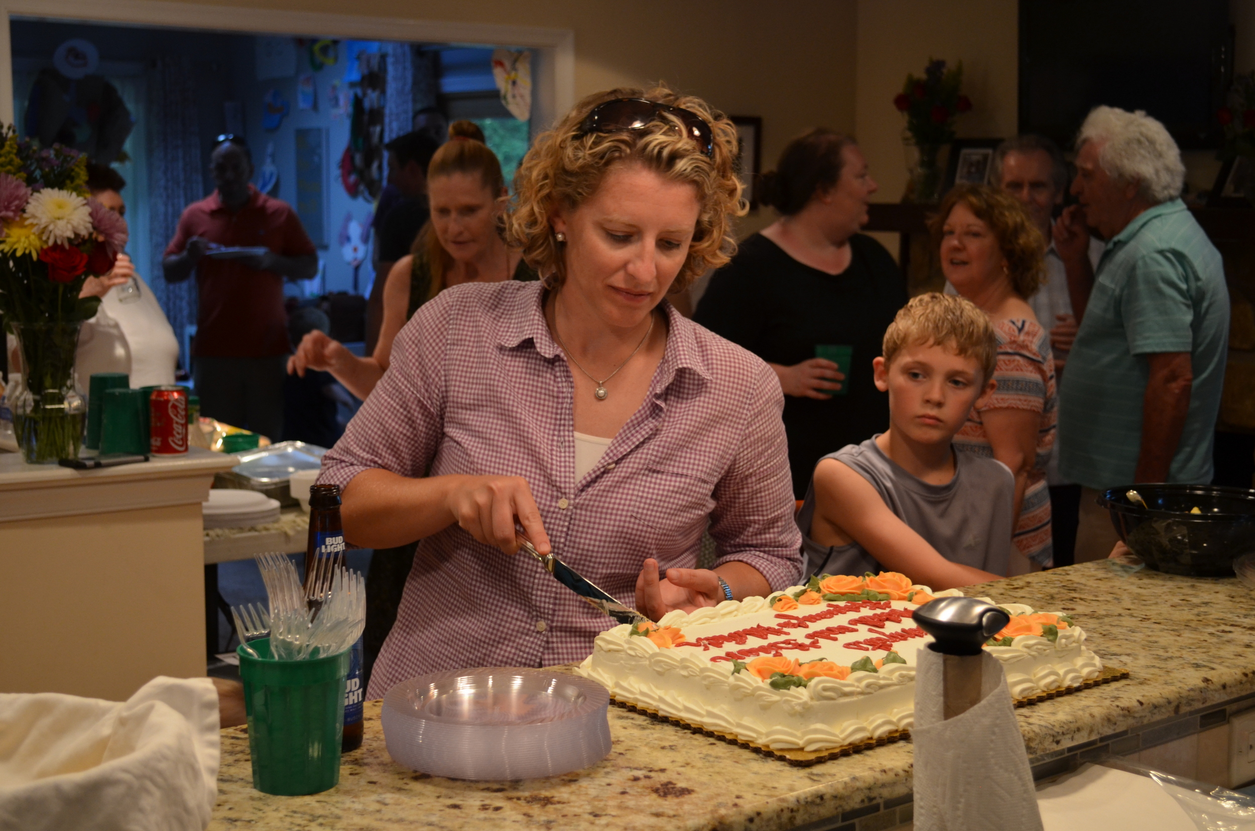 Kyler Boggs watches Dorothy cut the cake