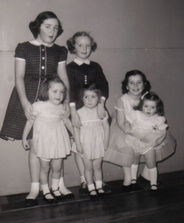 Year: 1958 (Mar. 1958 is printed on side of photo) Photo Number: 1216 Photo Shot: Wilkes-Barre Area Event Shot: Grandma's 75th Birthday Party Comments: Mary and Alice - Anne and Nora - cousins Margaret and Molly Gill.