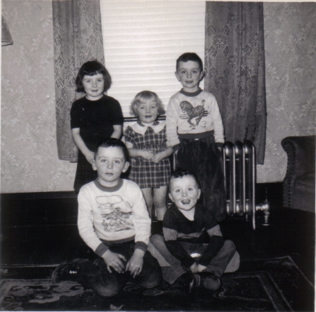 Year: 1952 (Feb 1952 written on back of photo) Photo Number: 1245 Photo Shot: Wilkes-Barre (Parsons) Event Shot: Sister Marita's Photo Album for Tom's Children Comments: Tom and Nick in front - Mary, Anne and Michael in back.