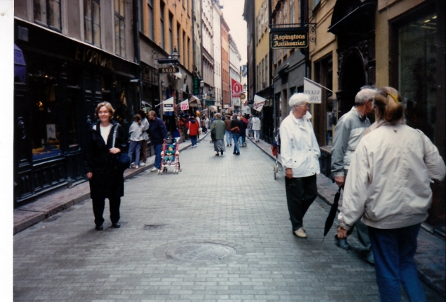 Year: 1996 (year of trip) Photo Number: 4460 Photo Shot: Not Classified or Unknown Event Shot: Anne - Visiting Mainland Europe (1993-2010) Comments: Anne in Gamla Stan (Old Town), Stockholm, Sweden