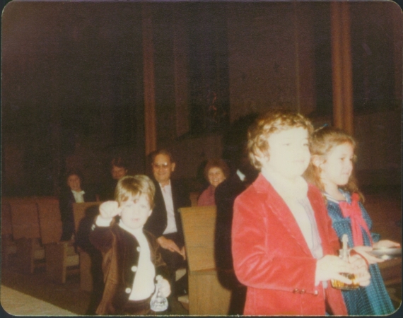 Comments: PJ in brown and Aaron Choman in red - rehearsal for their Uncle Billy's wedding