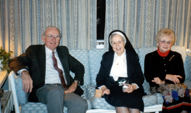 Comments: Uncle Fran and Aunt Pat with Sister Marita at Aunt Mollie's house in Forty Fort.