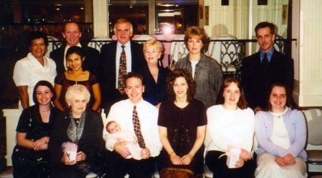 Comments: Kayla's Christening party - Kelly, Aunt Pat, Patrick holding Kayla, Sophia, Maura and Caitlin. Standing are Mari, Diana, Robert, Frank, Noreen, Jane and Brian.