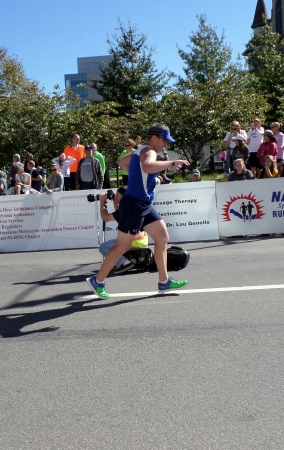 Comments: PJ almost to the Finish Line in the Steamtown Marathon.